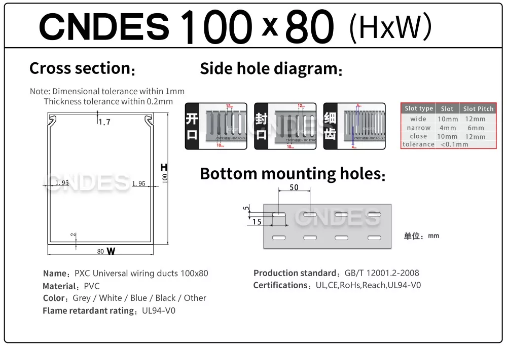 Vår 100×80 flexibla slitsade PVC-ledningskanal erbjuder gott om internt utrymme och en flexibel slitsad struktur, vilket möjliggör enkel kabeldragning, justeringar eller expansioner i fält. Den är idealisk för applikationer där utrymmesutnyttjande och flexibilitet är kritiska, såsom styrskåp, industripaneler, automationssystem och elskåp.