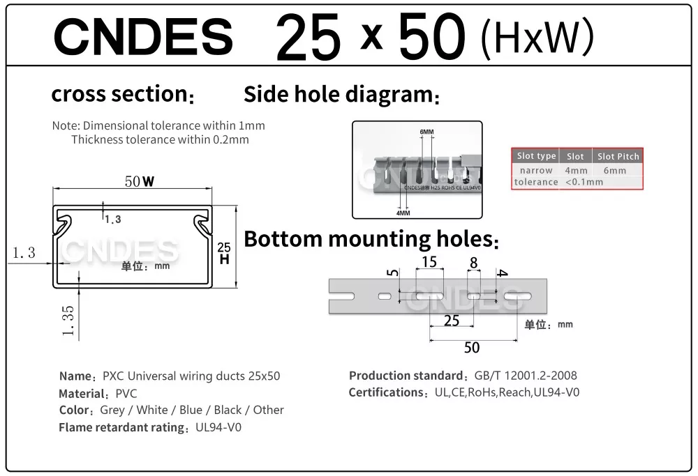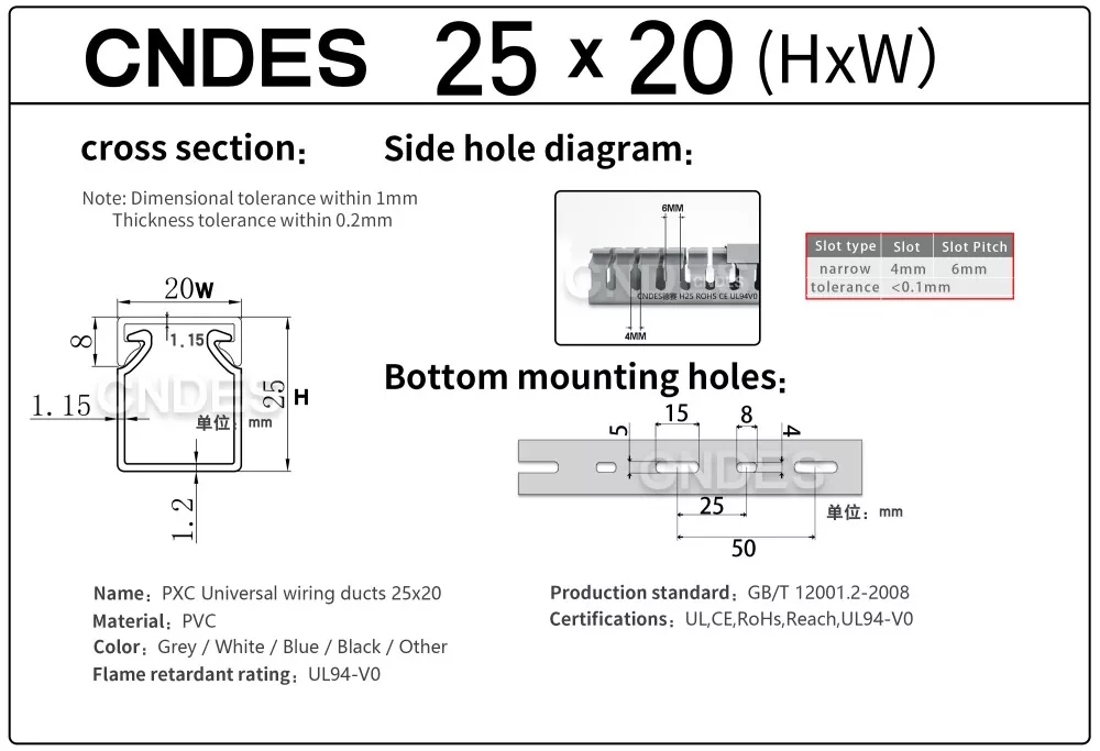 CNDES:s typ 25 kabelrännor inkluderar 25*20, 25*25 och 25*50.