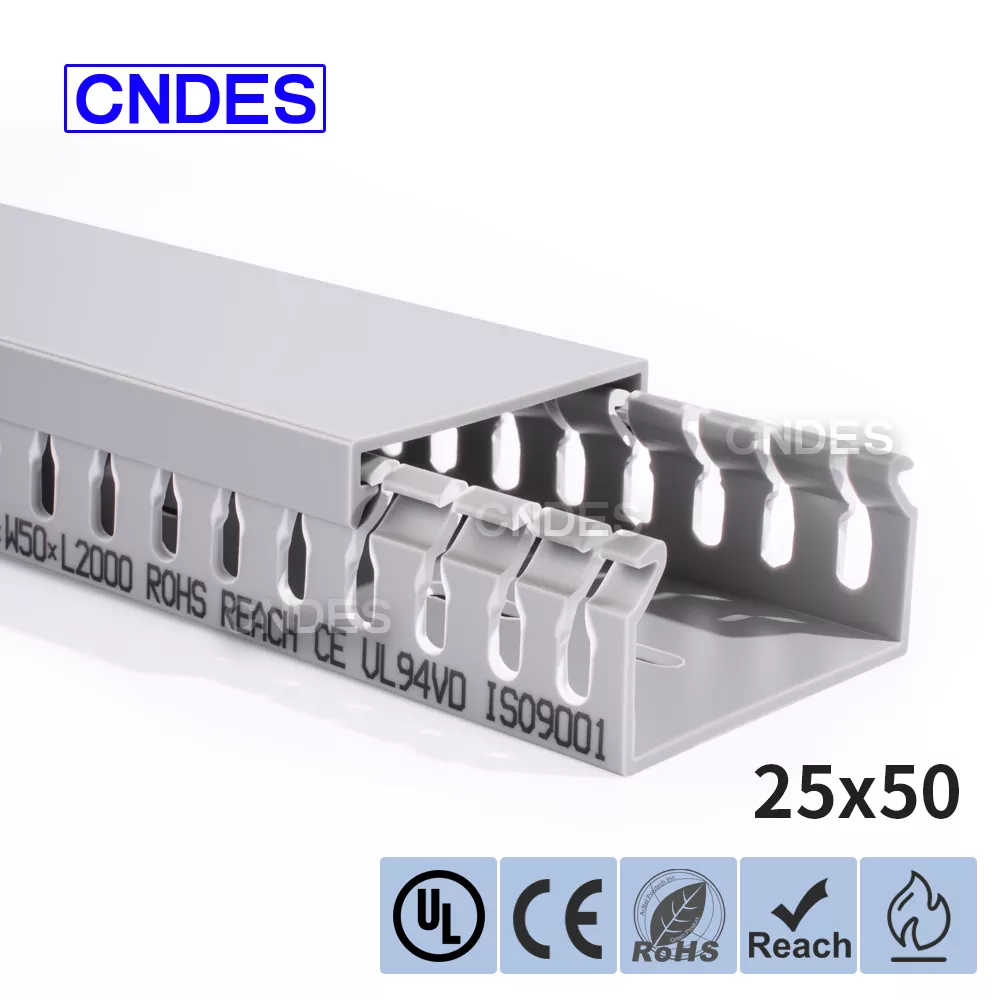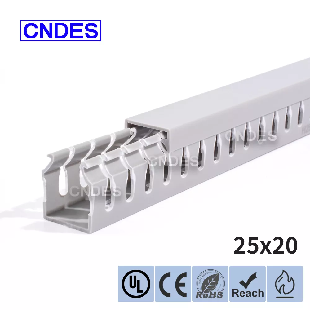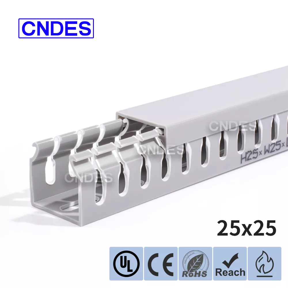 Genom vår oberoende utvecklade högprecisionsstämplingsutrustning, kombinerat med en unik segmenterad automatisk skärprocess, kan CNDES flexibelt producera produkter i flera specifikationer, inklusive högpresterande 25 mm höjd PVC slitsade kontrollpanelkanaler, som möter kundernas olika behov inom kontrollskåp och elsystem.