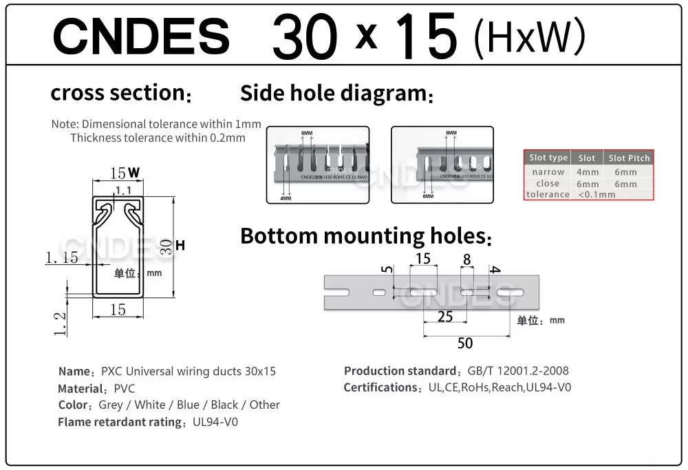 Den skräddarsydda 30 mm höjden slitsade PVC-kabelhanteringskanalen från CNDES är designad för effektiv, kompakt och säker kabeldragning i en mängd olika industriella, kommersiella och bostadsmiljöer. Idealisk för applikationer med snäva utrymmesbegränsningar, denna kanal säkerställer att dina ledningar är organiserade, skyddade och lättillgängliga.