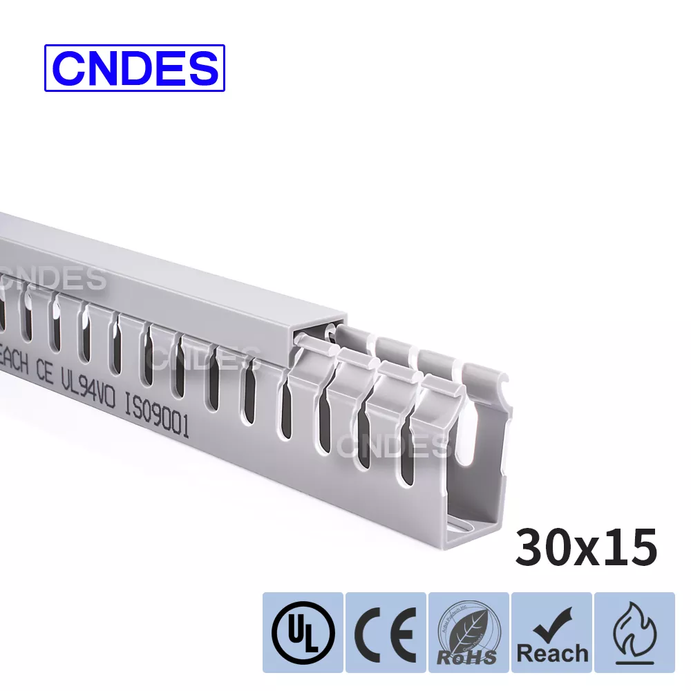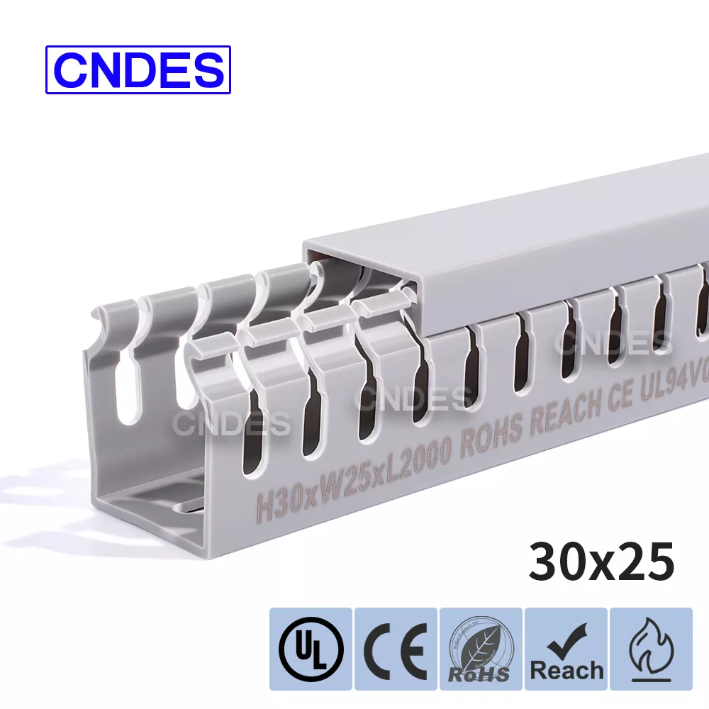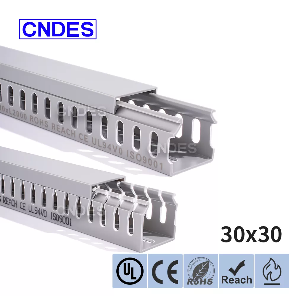 Den högpresterande 30 mm höjden slitsade PVC-kabelhanteringskanalen är idealisk för kontrollpaneler och elskåp, för att organisera strömkablar, datakablar och andra ledningar. Det förbättrar kabelns estetik och städning samtidigt som det skyddar kablar från mekaniska skador som krossning eller skärning. Dess design minskar också elektromagnetiska störningar, vilket förbättrar stabiliteten och tillförlitligheten hos elektriska system.