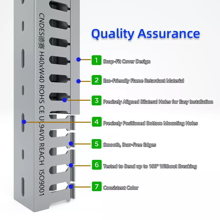 Den skräddarsydda 40×25 PVC kabelinstallationskanalen från CNDES är designad för kompakta elpaneler, små kontrollskåp och industriella kapslingar. Dess smala 40×25 mm profil möjliggör snygg kabelorganisation i trånga utrymmen, håller ström, signal och dataledningar rent åtskilda samtidigt som tillgängligheten och säkerheten förbättras.