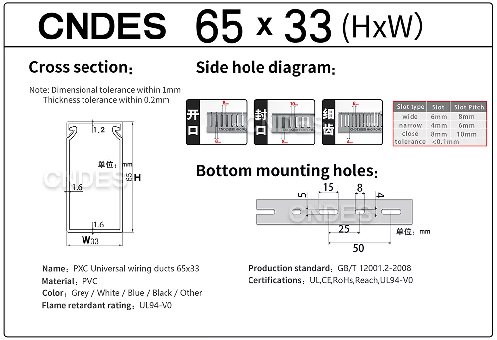 På CNDES designade vi Quality 65×33 Cable Routing Channel specifikt för projekt där utrymmet är begränsat men kabelorganisationen fortfarande spelar roll. Denna kompakta routingkanal hjälper installatörer att hålla kablarna snygga, skyddade och lätta att hantera inuti elpaneler, kontrollboxar och kompakta kapslingar.