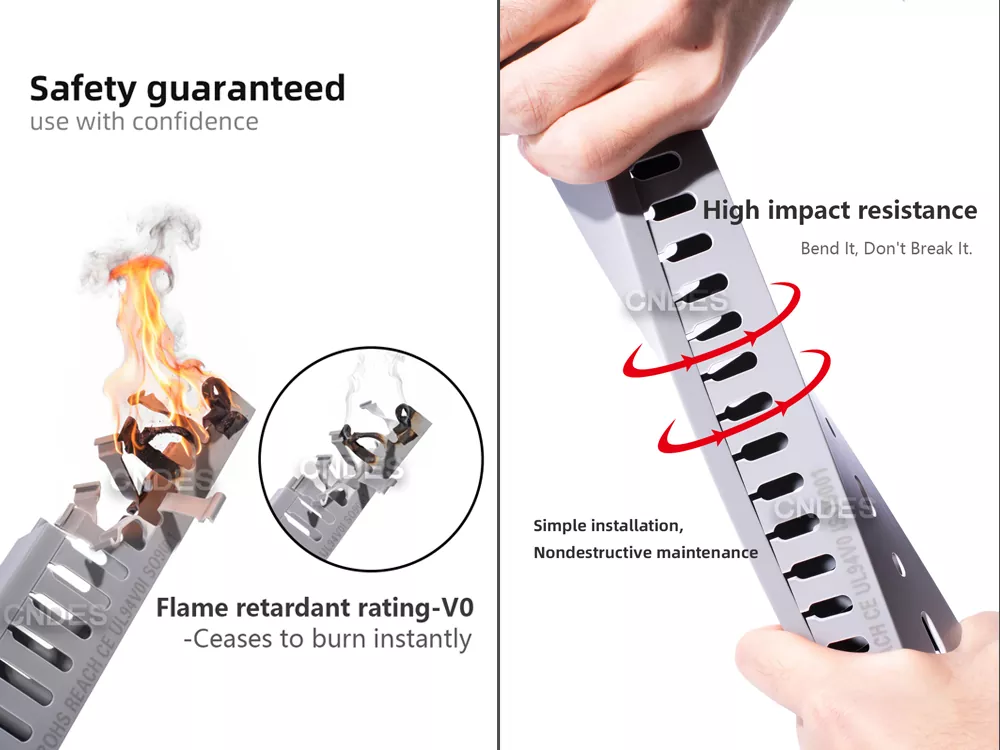 2. Industriell styrka, säker och pålitlig: Kvalitetsledningen med 80×80 slitsad PVC-växelbordsledning är gjord av förtjockat flamskyddande PVC-material (UL94-V0), vilket gör den robust, hållbar, slagtålig och med utmärkt belastningskapacitet. Det ger varaktigt skydd för kablar även i vibrationsmiljöer.